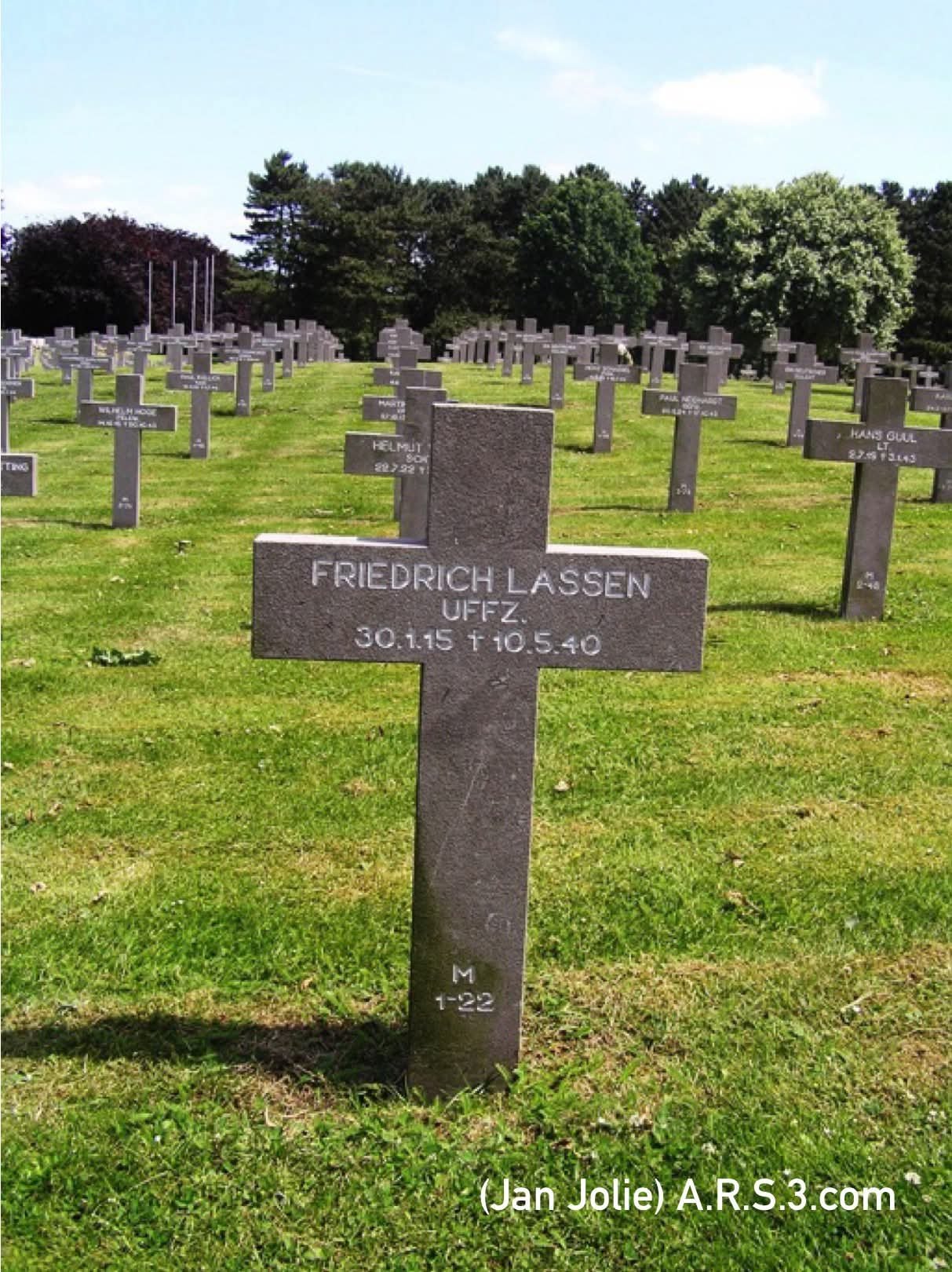 Burial Details: Friedrich Lassen buried Ysselsteyn, Netherlands. Block M Row 1 Grave 22.