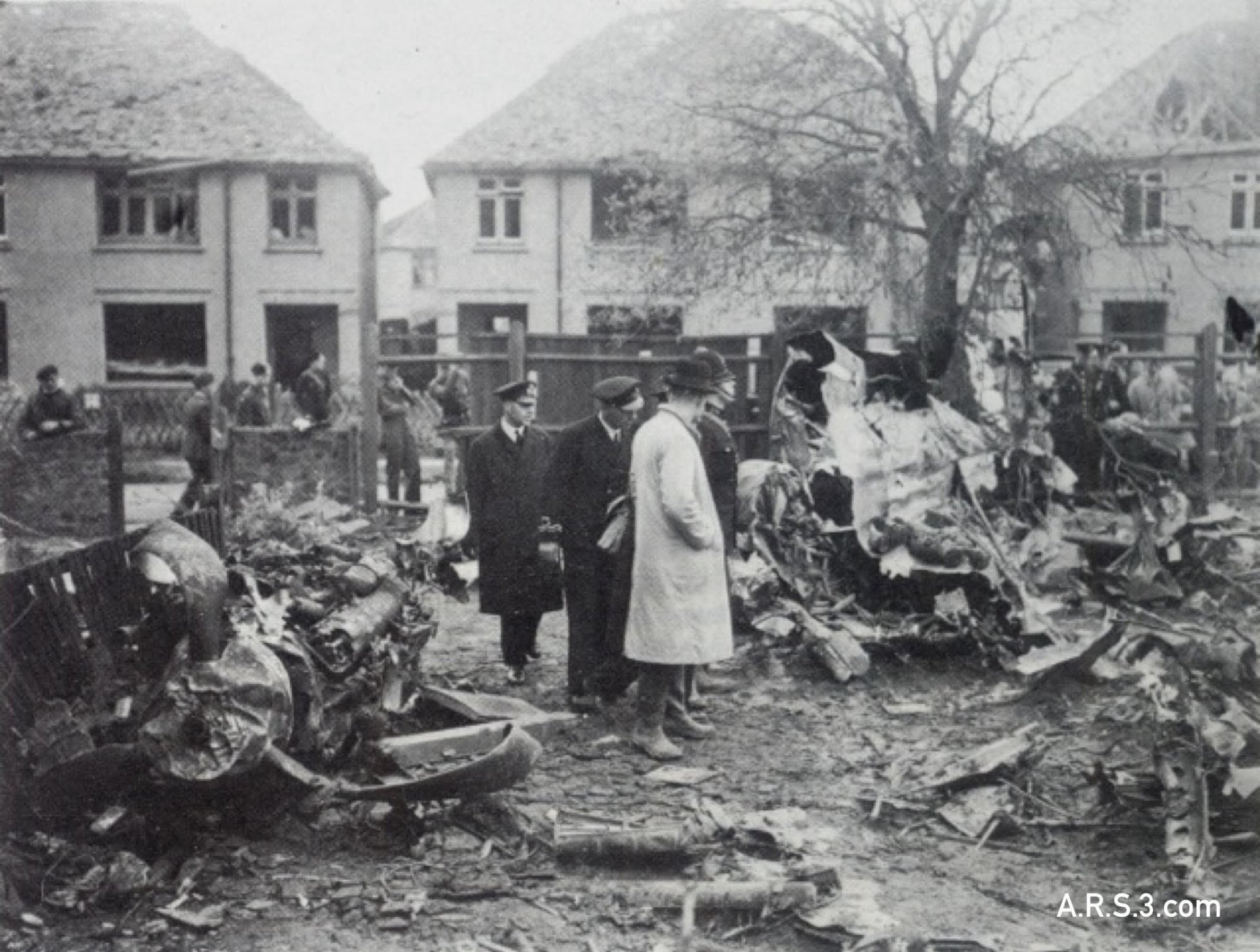 Main image - Scene of devastation after Heinkel He 111H-4 crash, Victoria Road, Clacton on Sea, Essex, England.