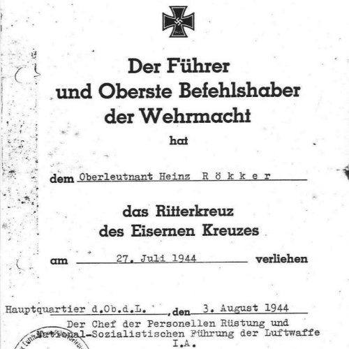 Citation for Knights Cross award 27.07.1944.