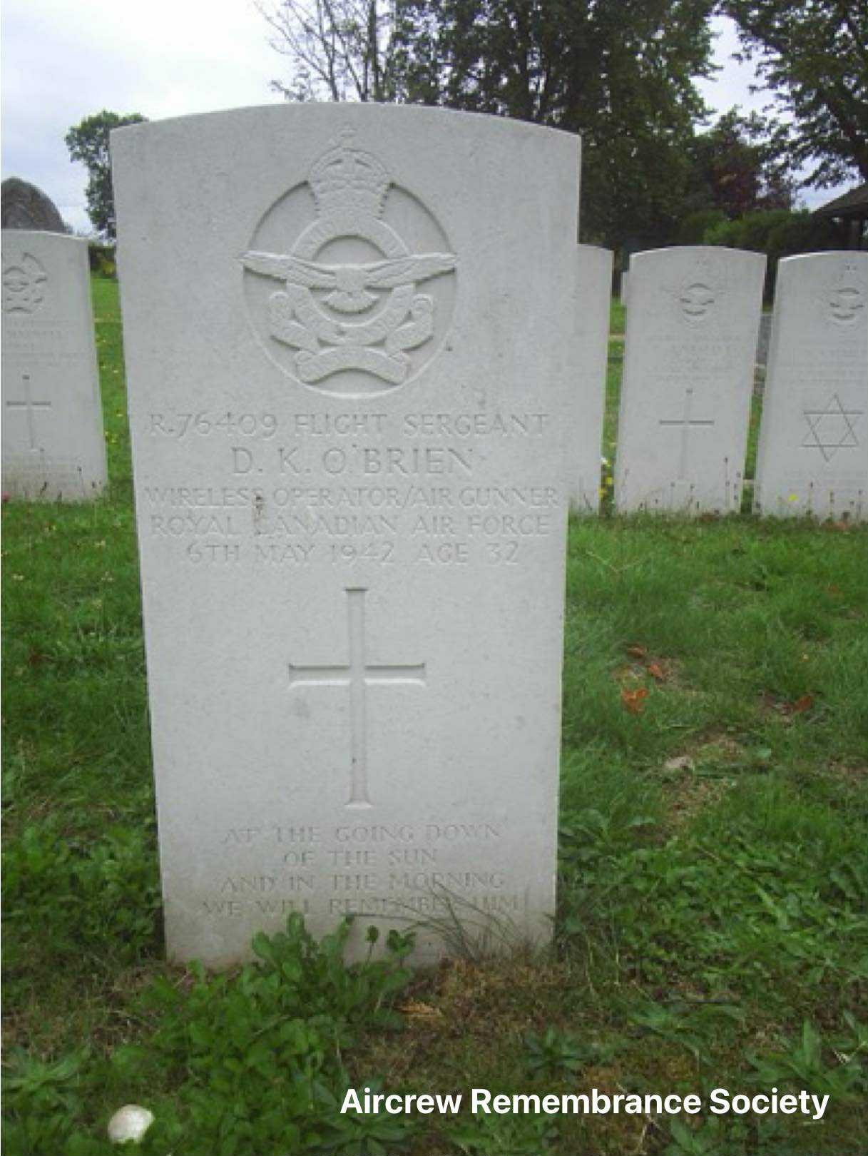 F/Sgt Donald Kempton O'Brien Kempston Cemetery, Kempston, Bedfordshire. Block J, Graves 100.