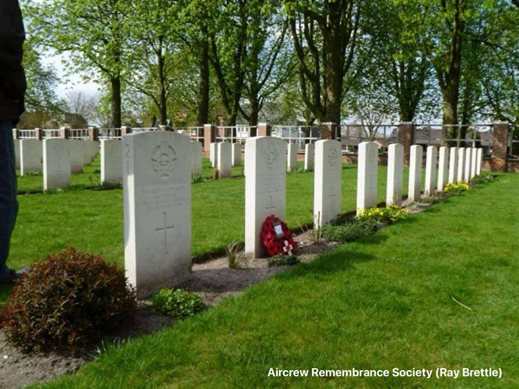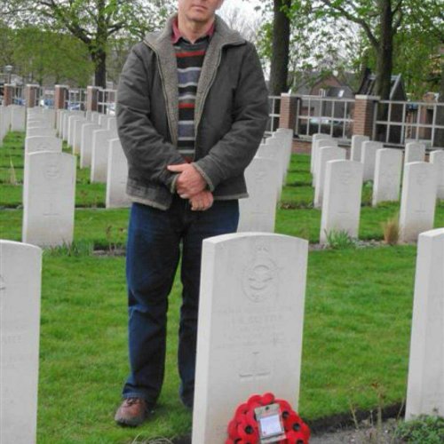 "We flew to Amsterdam and then drove the 60 or so miles to Uden-where we paid an initial private visit to the gravesite of our Uncle and the rest of his crew - all of whom sadly died in the crash. It was a moving moment when Len laid a wreath on his brothers grave. The following morning we returned to the cemetery to be met by Mr Antoon Verbakel, secretary of the Foundation - Uden war cemetery who had been advised by our Dutch contacts that we were coming and he showed us around and told us of the history of the burials etc.