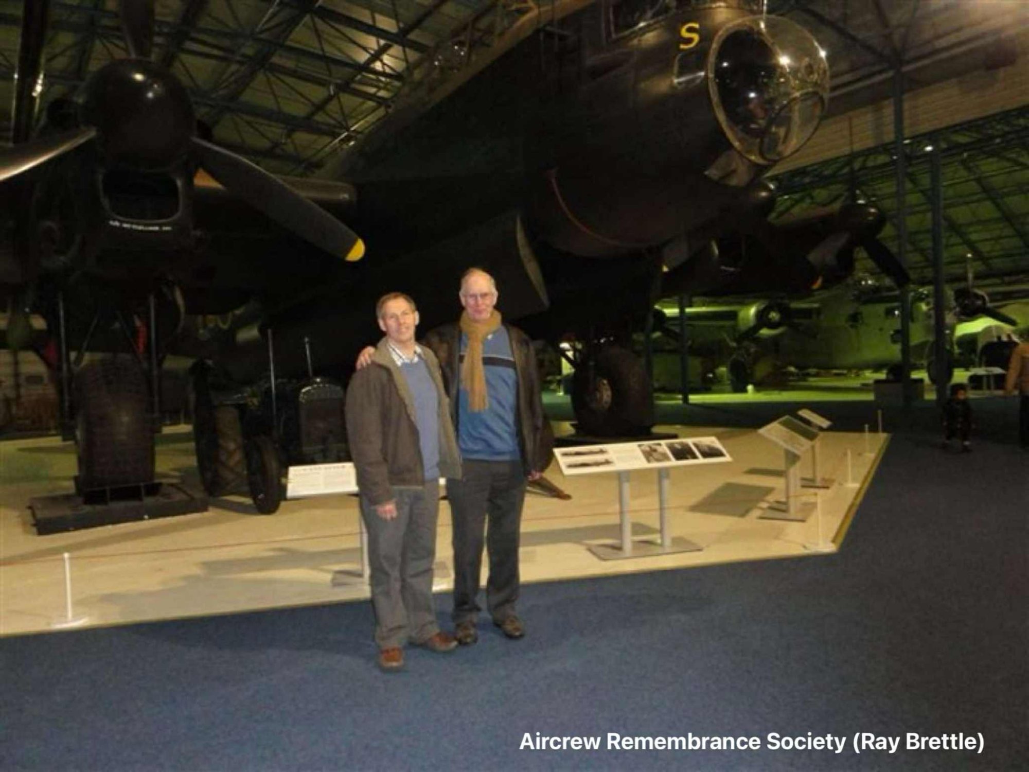 Ian was only 5 months old when his Father died-and his mother later re married (although she is amazingly still alive and living in Scotland-so he is going to try and find out anything more that he can from here-if she is able to remember etc.) We met in front of the Lancaster R5868 -in which both his Dad and Les did one trip on 8/9th September.1942.Gives you a slightly eerie feeling knowing that your family member had flown in that very same aircraft on ops.