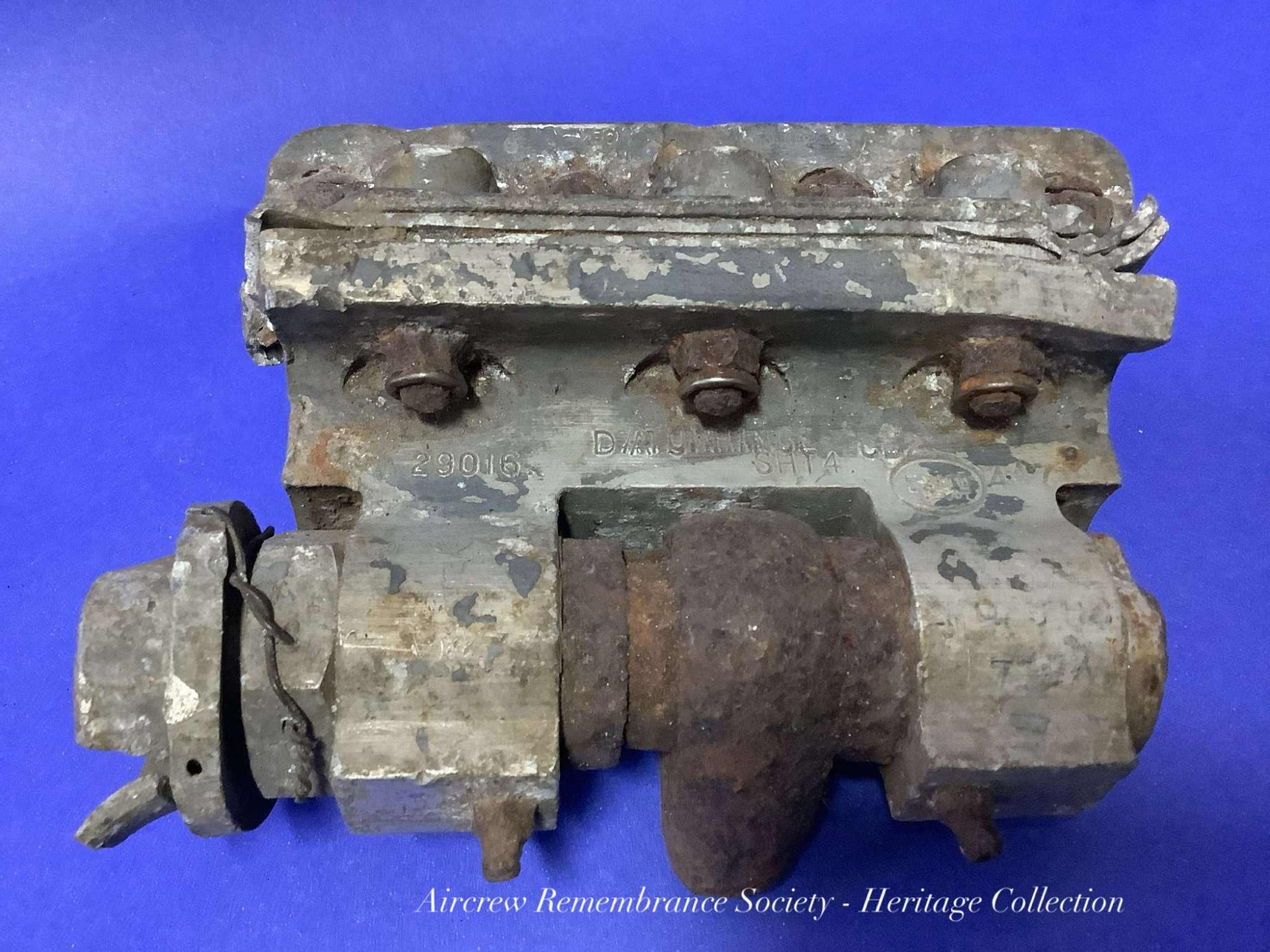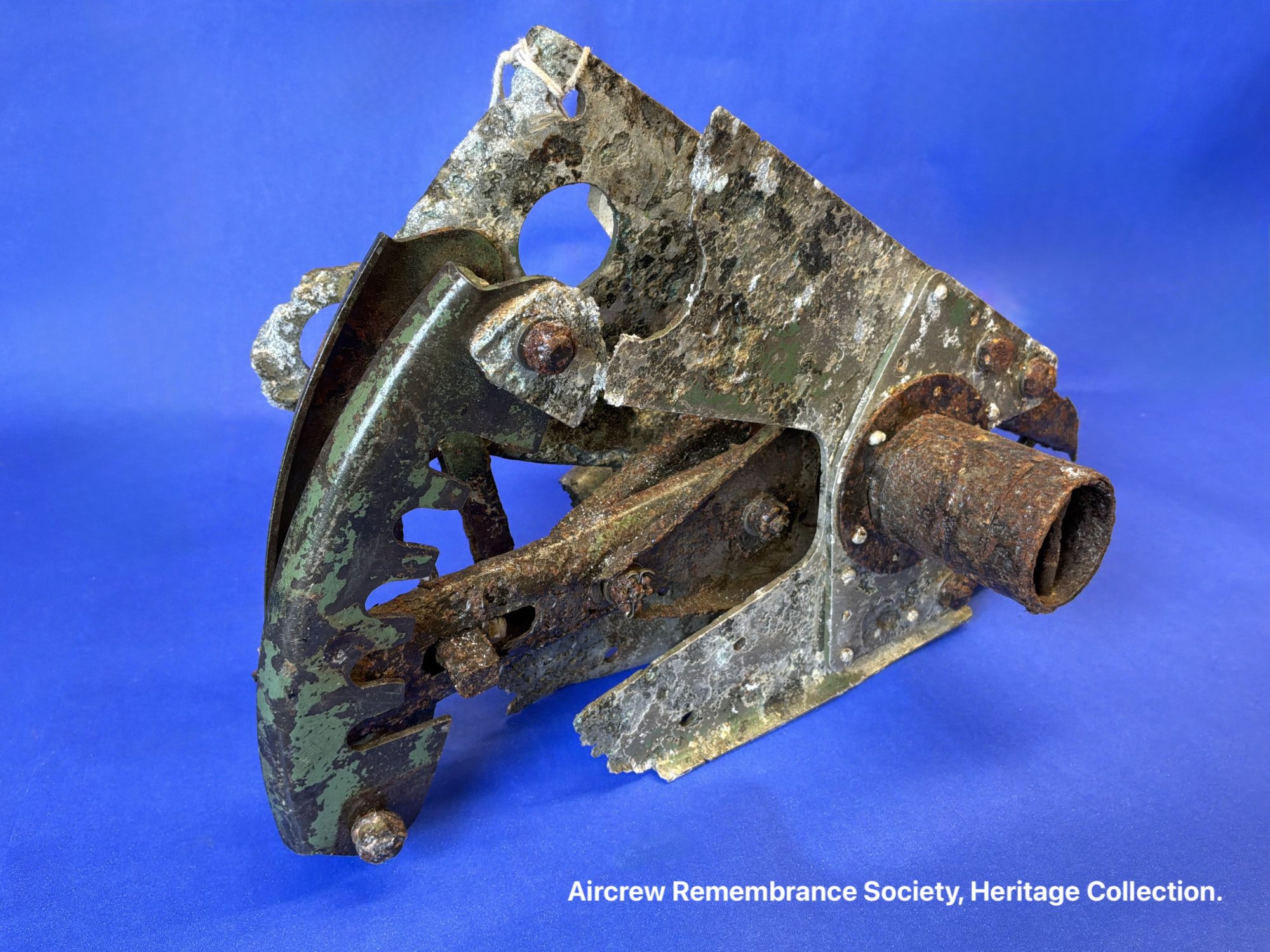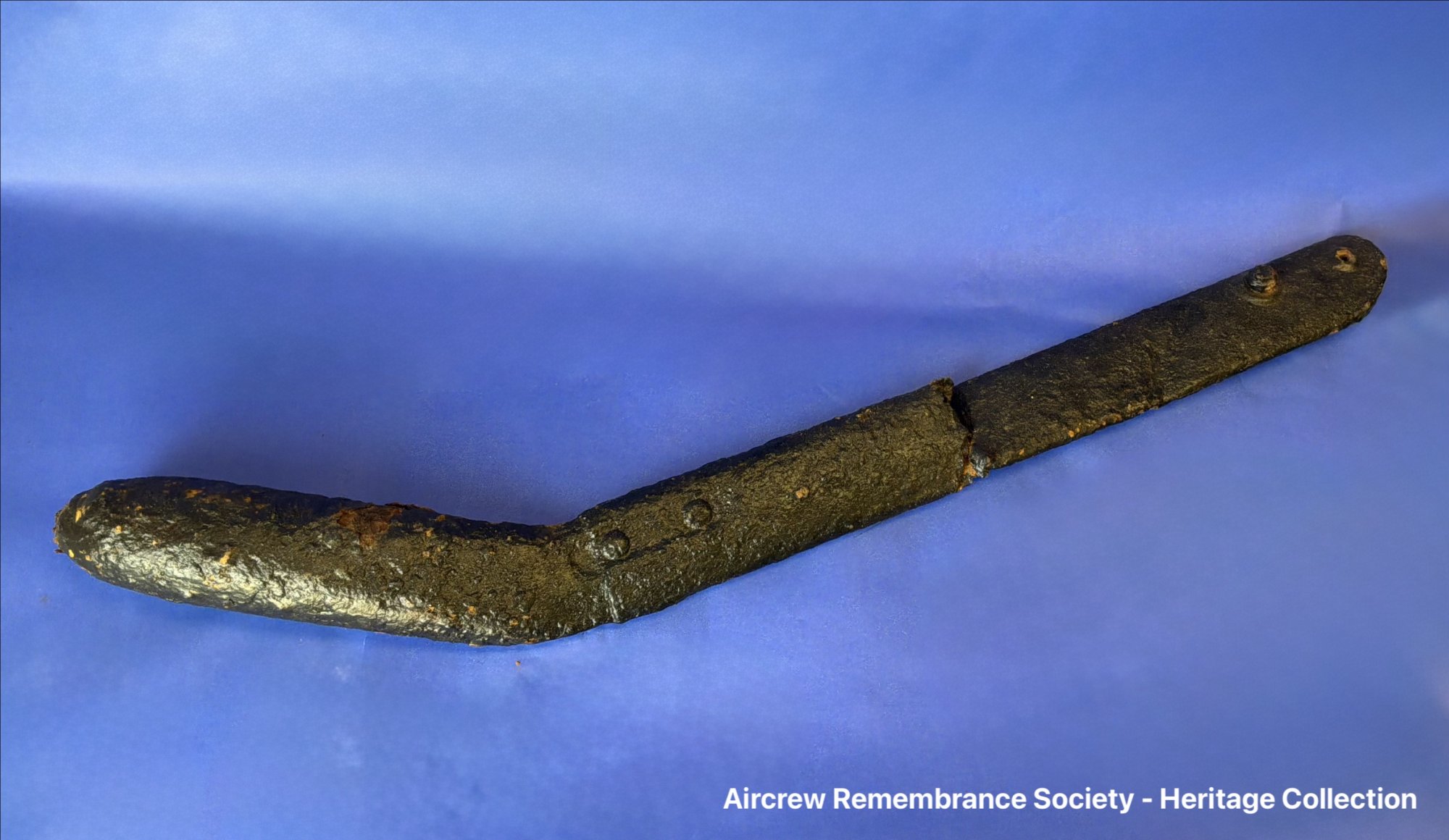 A small hinge recovered from the crash site Of Wellington X HE226.
