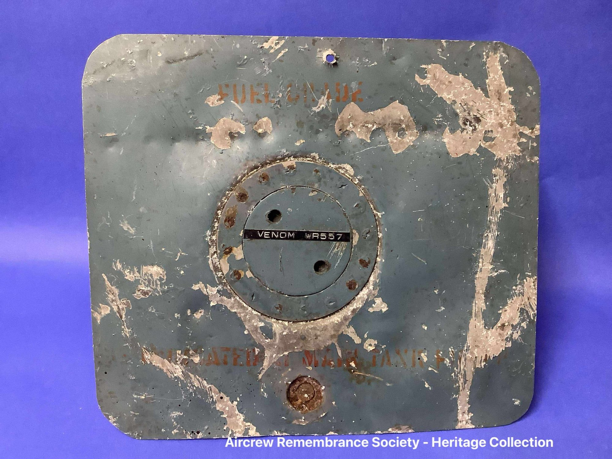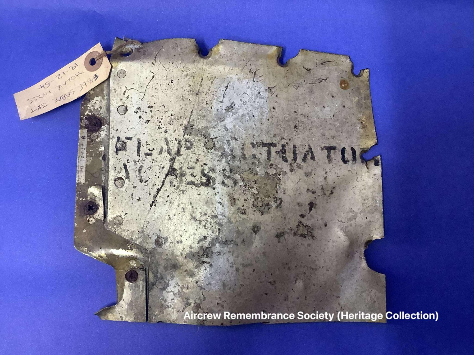 Access panel recovered from the crash site of F-86 Sabre Mk. 2 (serial number 19234) crashed on Black Hill, near Holme Moss, on December 14, 1954