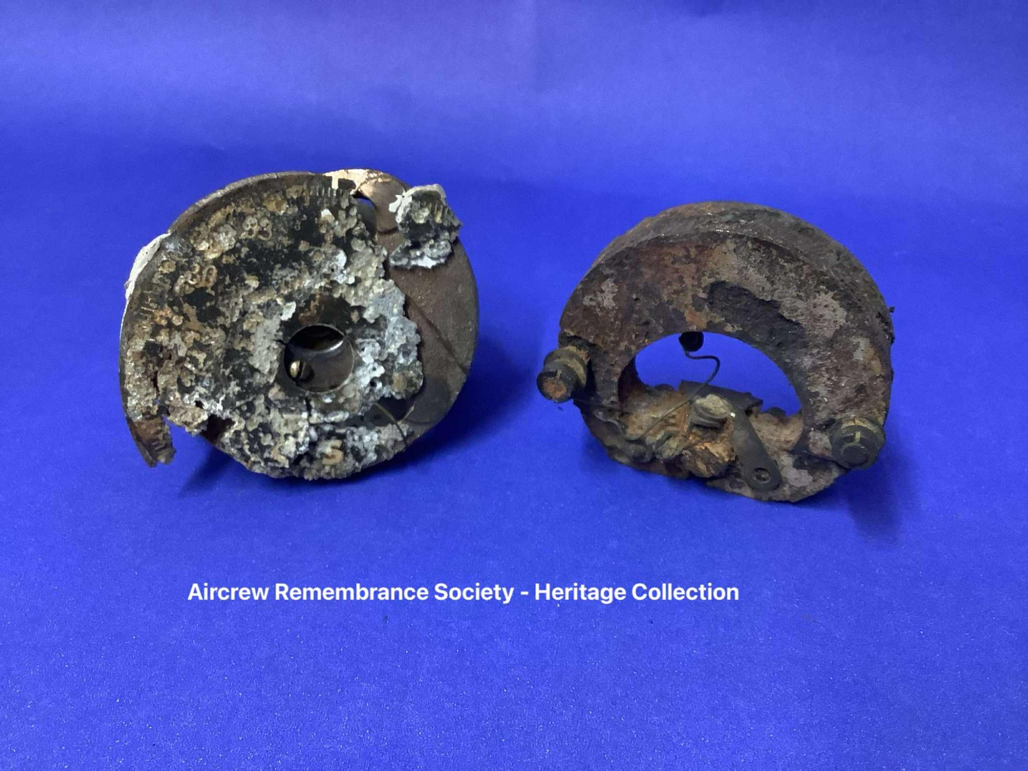 Remains of Navigators Astro Compass recovered from the crash site of Halifax III, serial LW579 coded MH-V FROM 51 Squadron R.A.F.