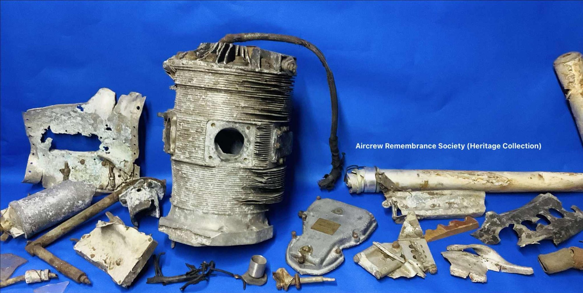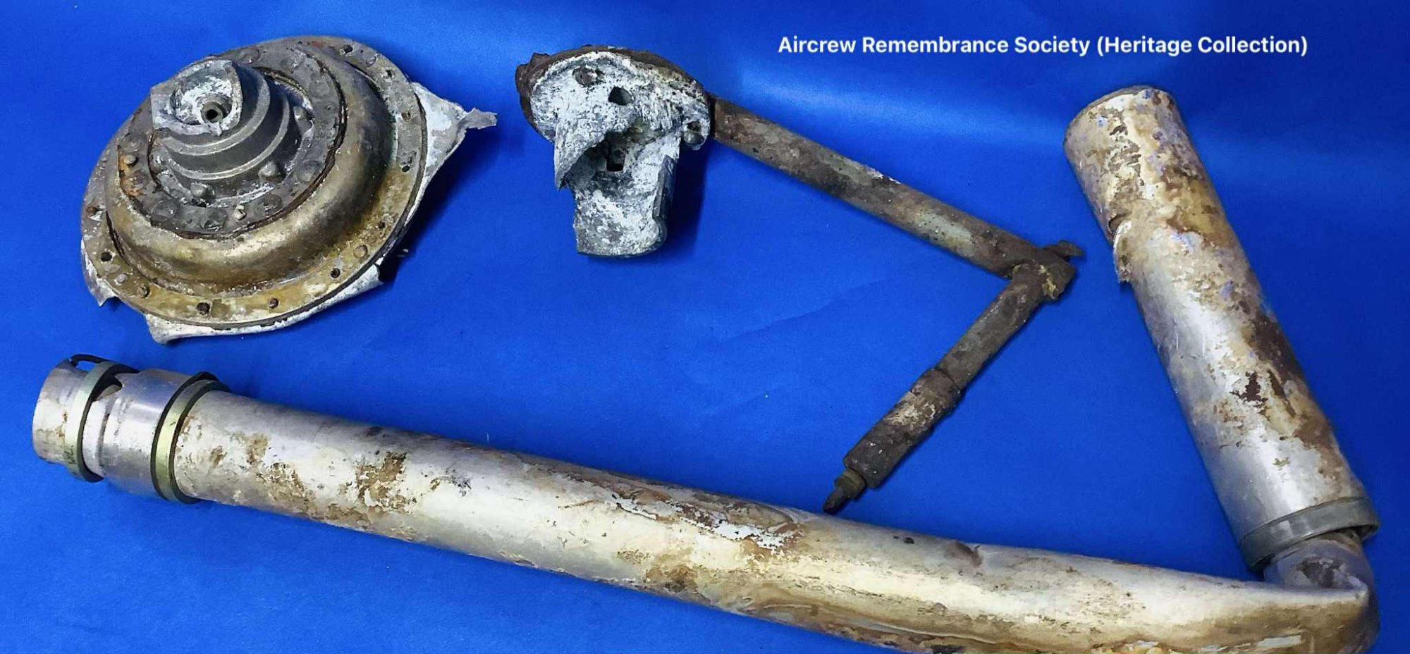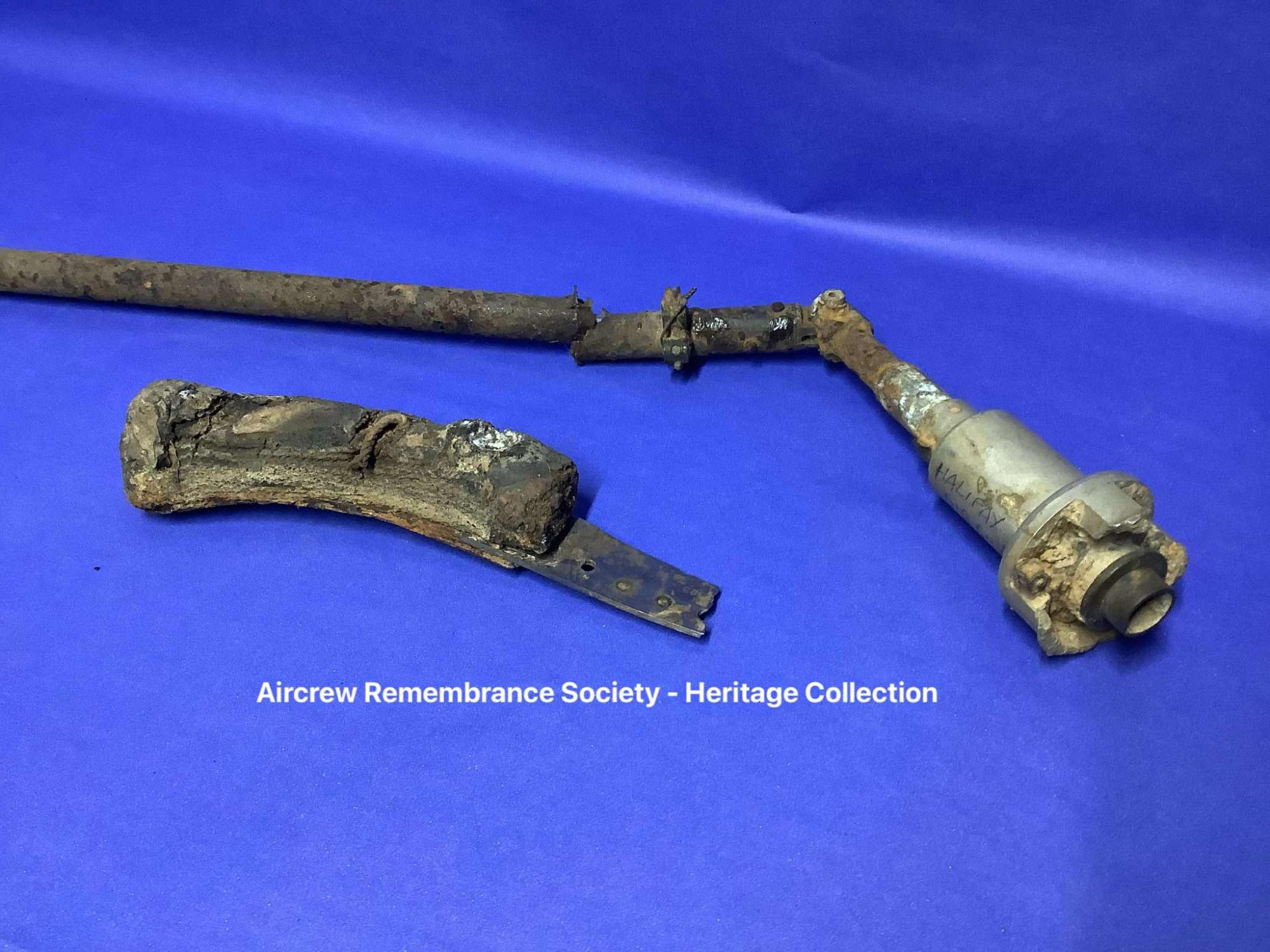 Airframe part and engine rocker arm recovered from the crash site of Halifax HR727