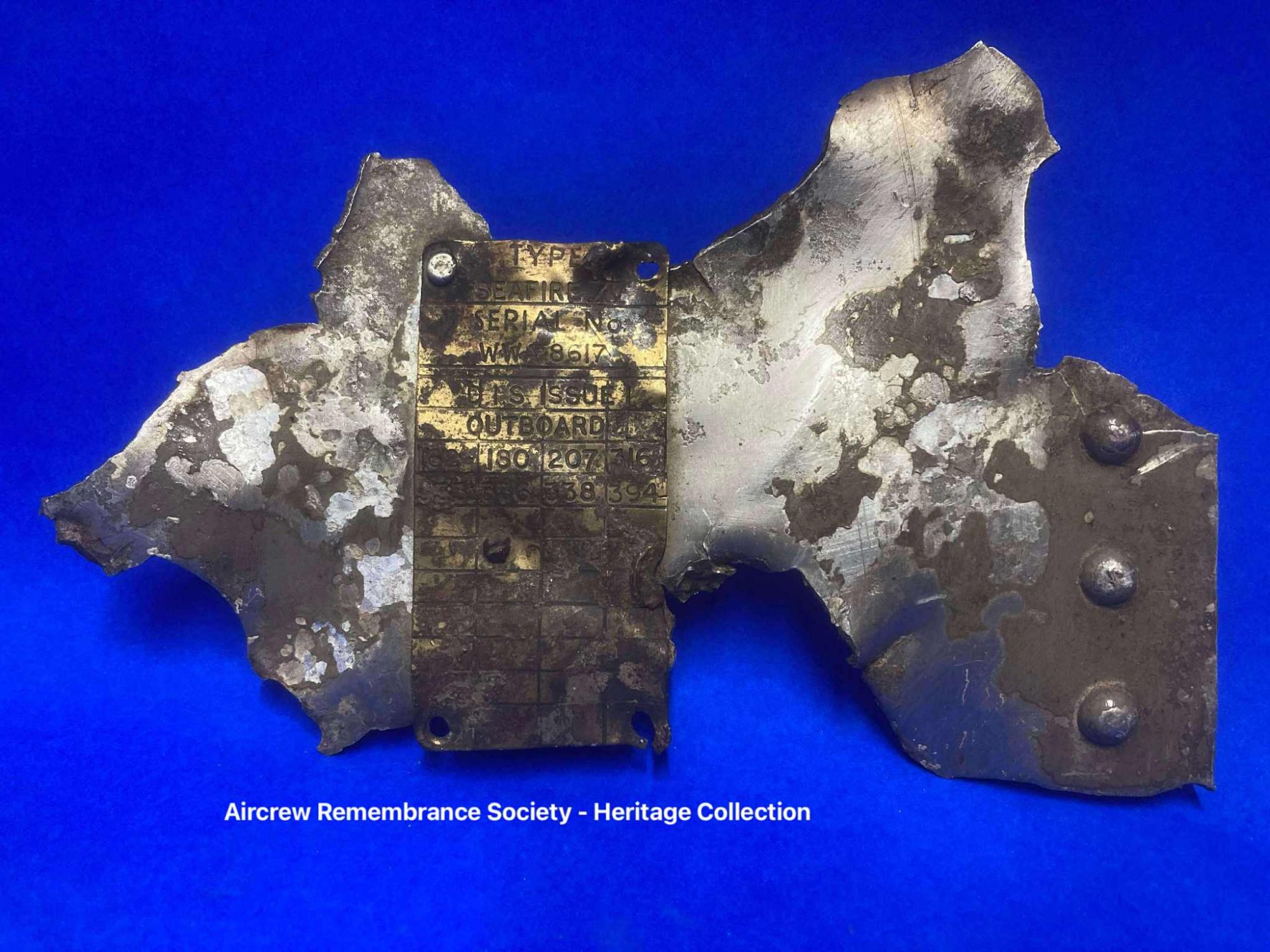 Remains of fuselage Skin recovered from the crash site of Grumman Martlet IV Serial FN142 Fleet Air Arm